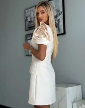 Rochia care atrage toate privirile: detalii voluminoase și croi drept. Perfectă pentru ocazii speciale.