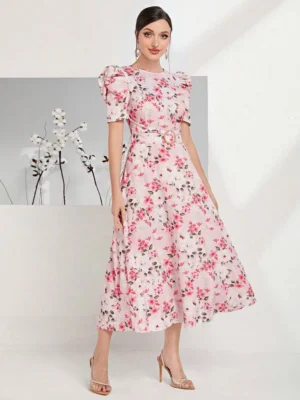 Îndrăznește să strălucești în roz floral. Elegantă și confortabilă, perfectă pentru ocazii speciale.