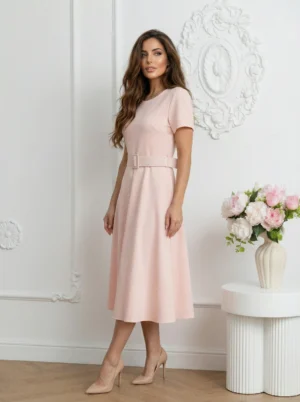 Poartă cu încredere rochia din vascoză roz. Versatilitate garantată pentru orice ocazie.