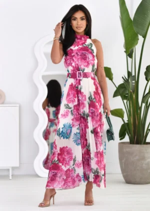 Hit-ul sezonului: rochie lungă roz cu imprimeu floral. Un must-have pentru garderoba ta!